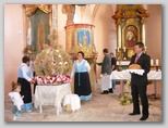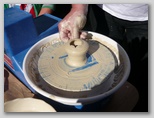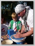 Přátelé ze Starkówa nás uvítali v nově postavené budově u fotbalového hřiště. Po malém občerstvení si každý mohl pod odborným dohledem na hrnčířském kruhu vytočit vázičku, talíř nebo pohárek. Bylo to velice zajímavé, většina z nás měla hrnčířskou hlínu poprvé v ruce. Po vydatném obědě, byla v místním kostele od 13.30 hodin mše a svěcení dožínkového věnce.